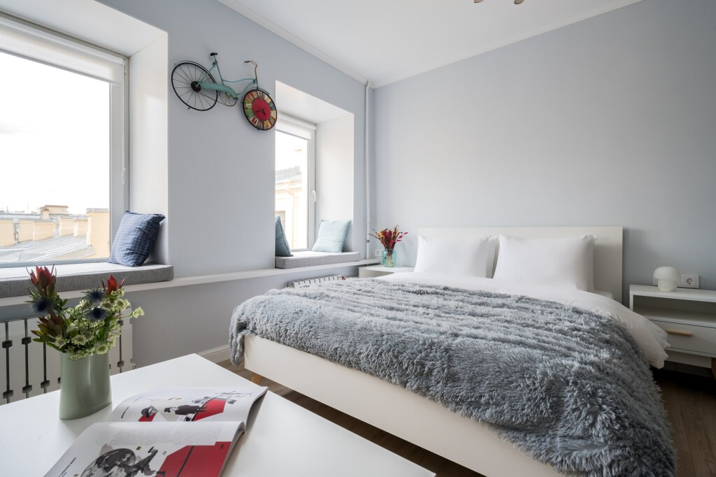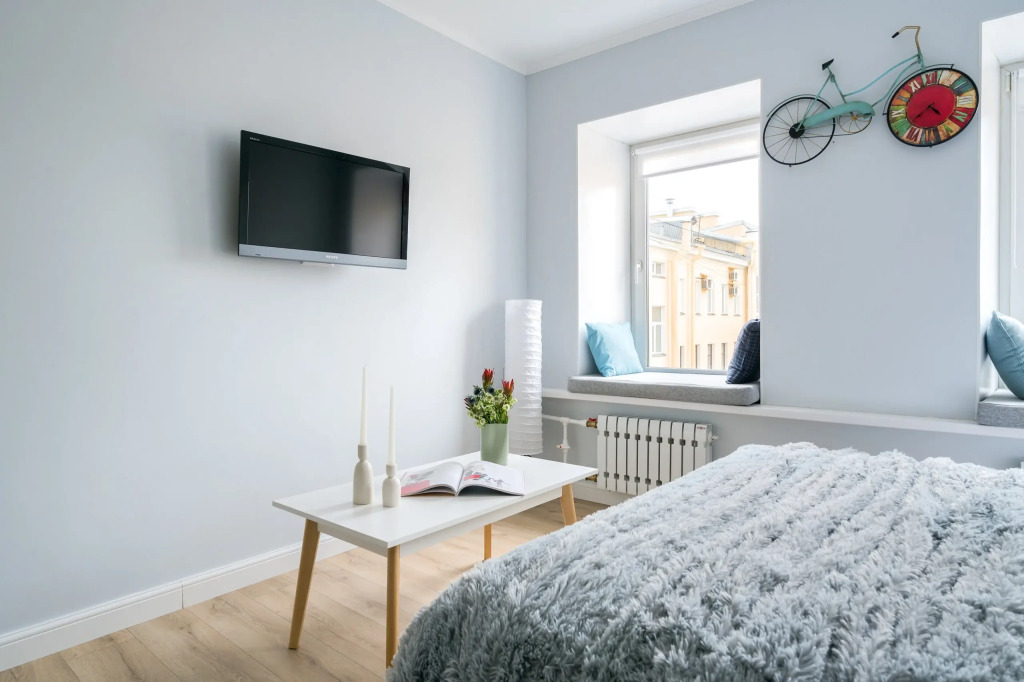 A studio with views of the rooftops of St Petersburg is available for booking. The apartment can be suitable for a tourist trip, a romantic weekend or a business trip. There is a double bed and a double sofa at guests' disposal. The apartments are located on the 5th floor in a house without a lift.