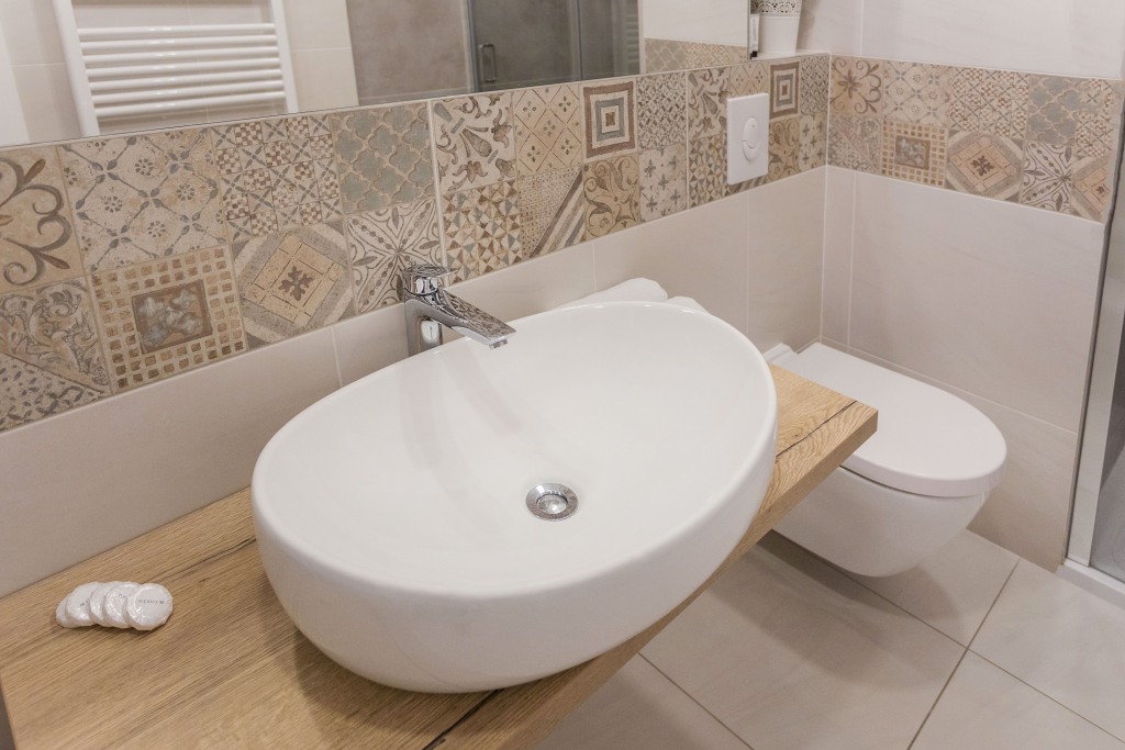 In the room, there is a shower and a TV. The room equipment depends on its category.