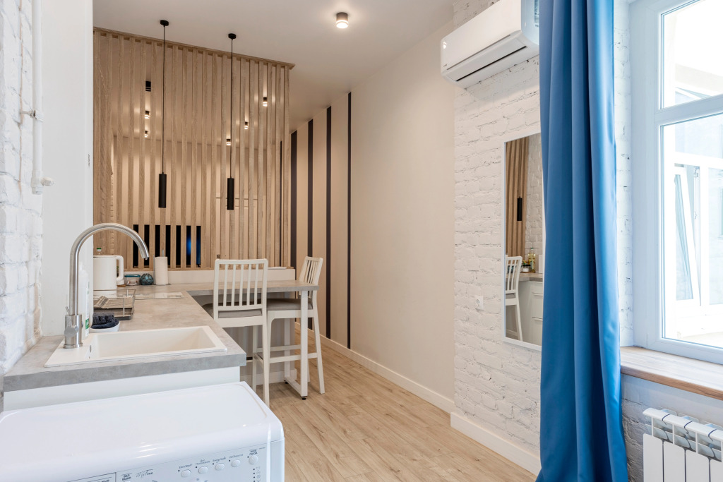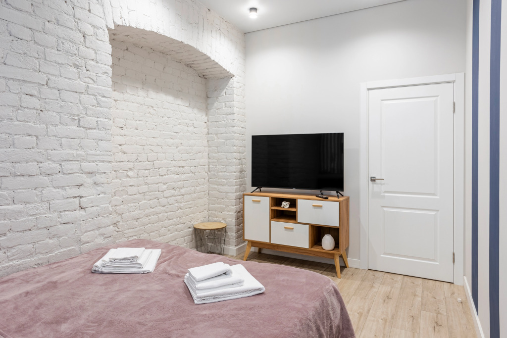 The flat is equipped with everything necessary for a comfortable stay of guests: there is a full set of appliances, including a TV and household appliances.