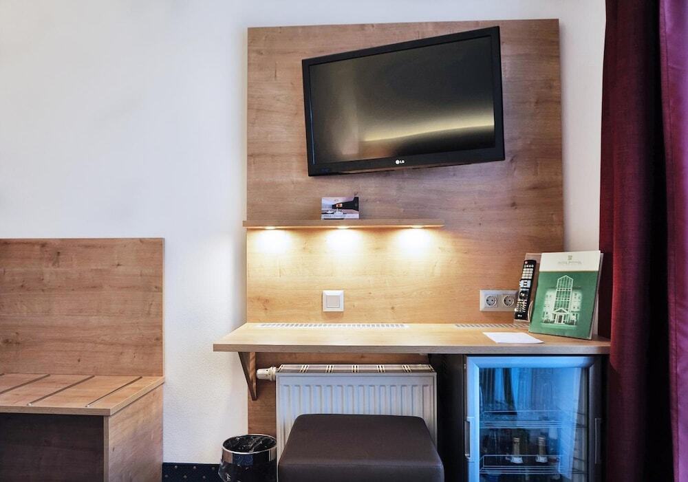 The room is warmly decorated and has everything you need to have a rest after a long eventful day. There is a shower and a TV. The room equipment depends on its category.