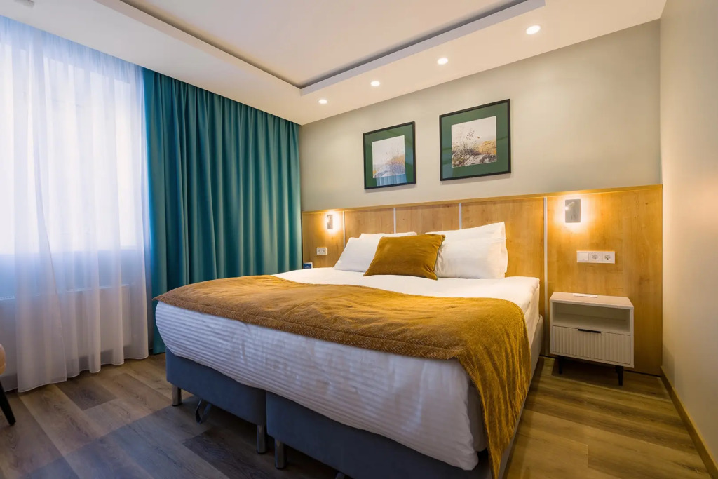Eight rooms are available for booking — from Standard to Suite — suitable for business trips or a romantic weekend. All rooms are equipped with air conditioning. Each bathroom provides fluffy towels and a complimentary set of toiletries. Guests have access to a fully equipped kitchen area with a stove, refrigerator, and all the necessary tableware.
